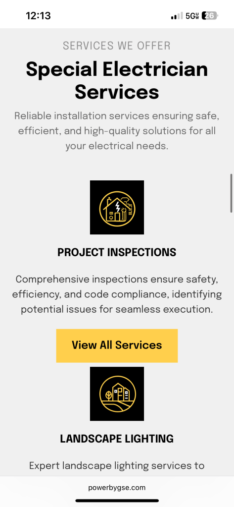 Powerbygse.com is a website built for Golden State Electric, a newly established electrical company aiming to showcase their electrical services. It was time for a professional digital presence to turn a solid reputation into a scalable brand.
