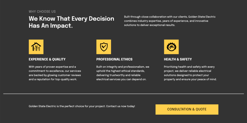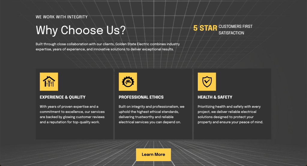 We didn’t just build a website, we studied how people pick an electrician. Most users search through Google or Yelp, relying on five-star reviews and quick contact options. For Golden State Electric, that meant creating a site that didn’t just look good but also answered every client’s unspoken question: “Can I trust them?”